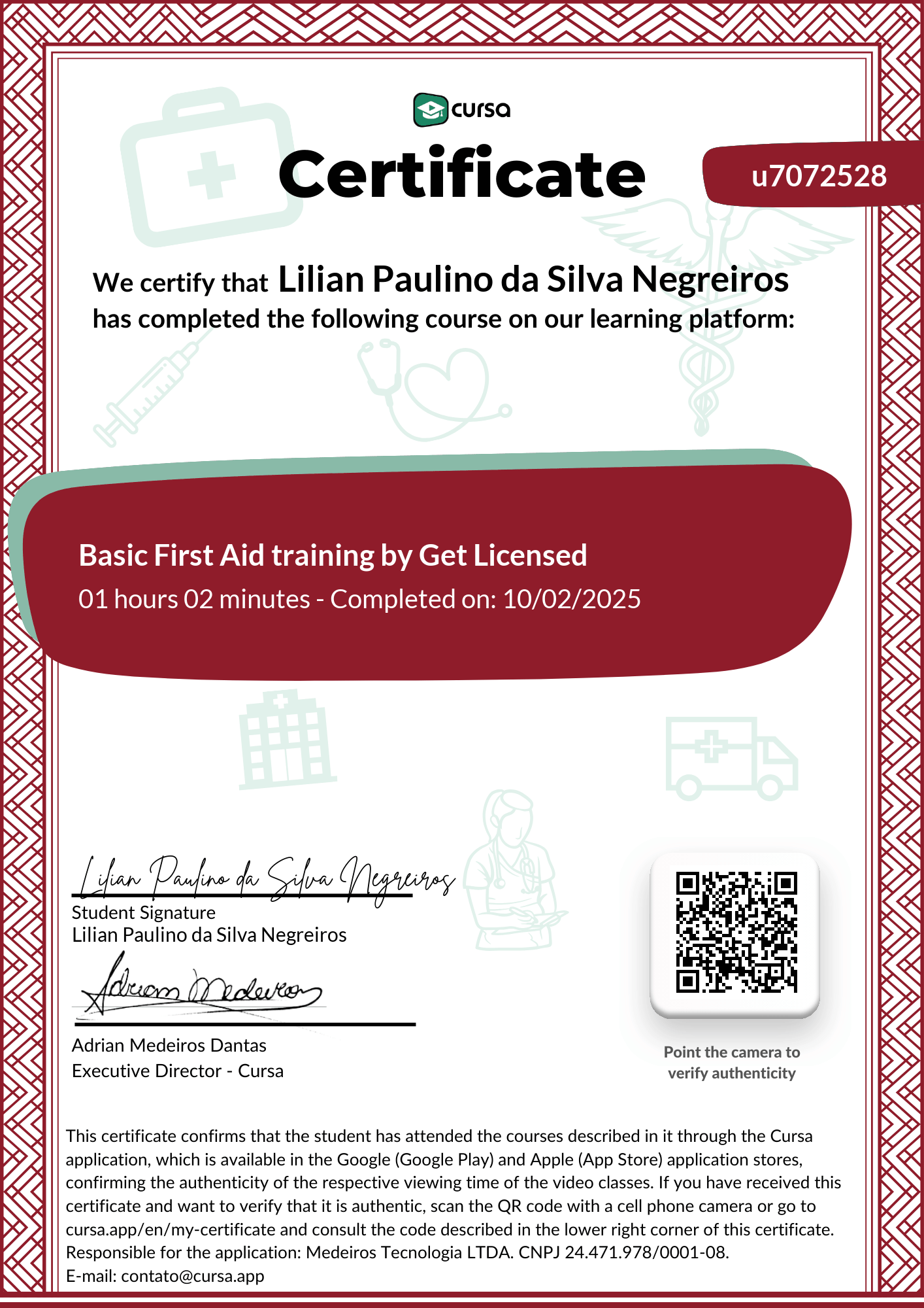 What is the model of the certificate that I will receive by email and in the photo gallery on my cell phone?