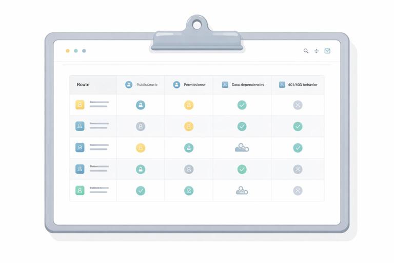 Crie uma matriz simples que liste cada rota e seus requisitos: autenticada? quais permissões? quais dados mínimos devem estar carregados? qual fallback? Isso evita “rotas esquecidas” e facilita QA.