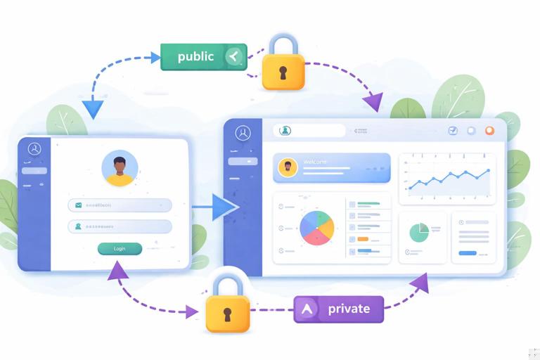Antes de codar, vale fixar algumas decisões. Elas determinam como o roteamento e a autenticação se encaixam e evitam “gambiarras” como verificar token em toda página manualmente.
