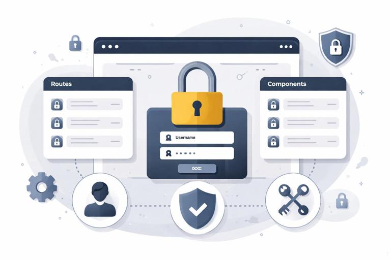 Nesta seção, vamos tratar de autorização em dois níveis: por rota (navegação) e por componente (UI e ações pontuais), com um modelo prático e escalável.